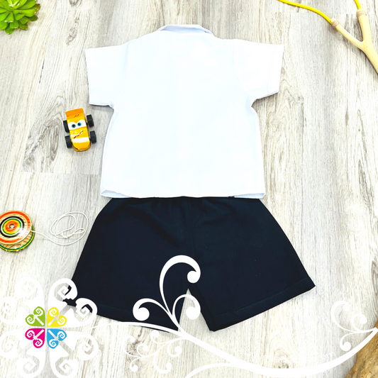 Navy Blue Lalito Short and Shirt Set - Mexican Boy Outfit