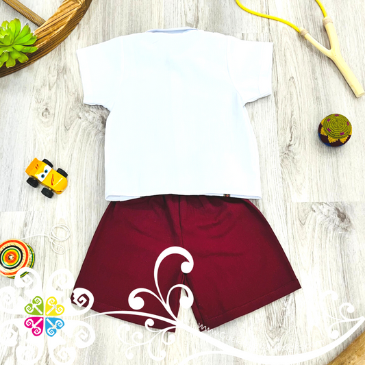 Maroon Lalito Short and Shirt Set - Mexican Boy Outfit