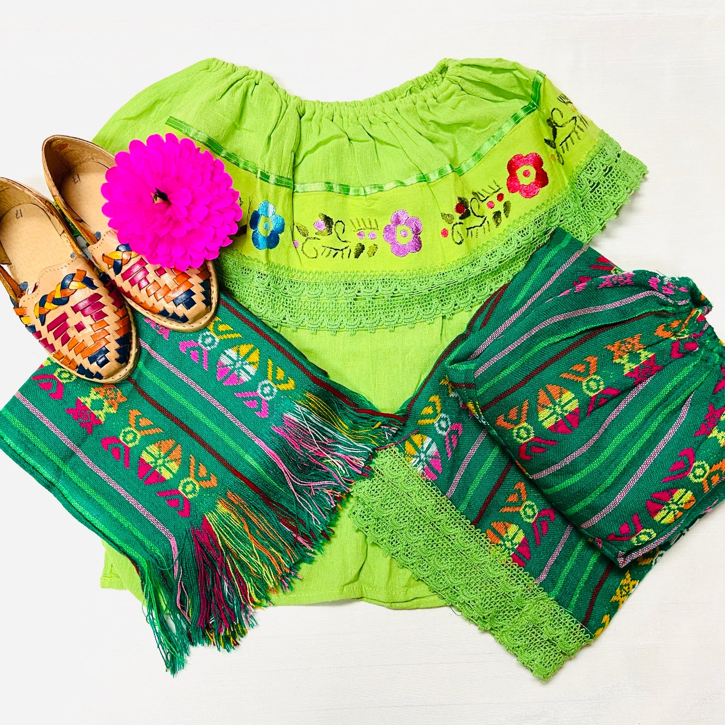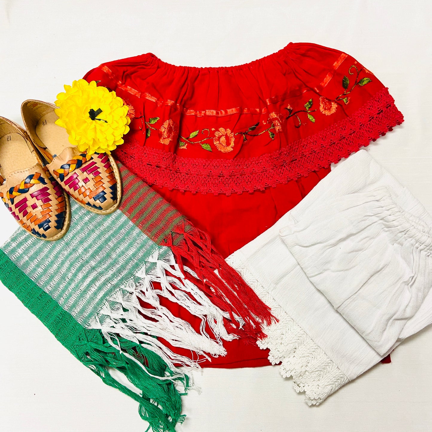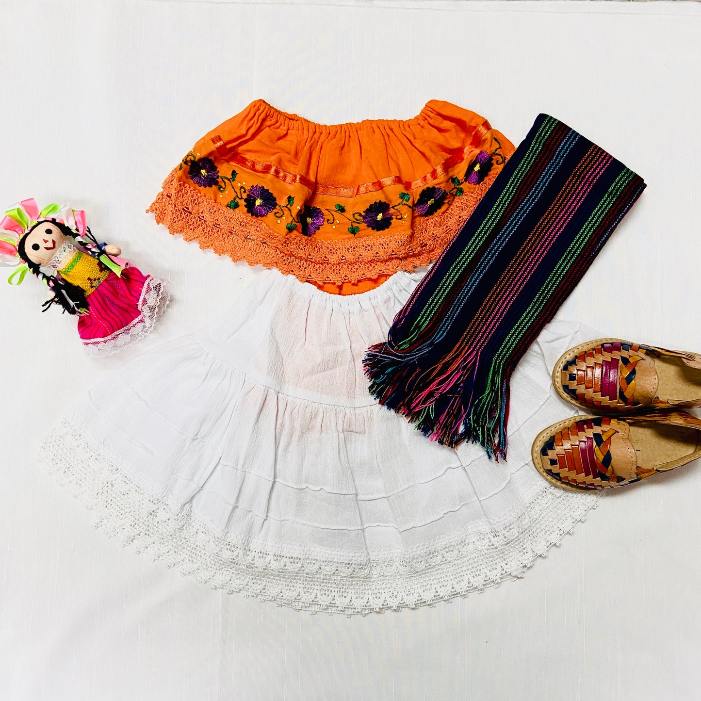 Please note the set includes ONLY skirt, top and scarf. NO shoes or flower is included.