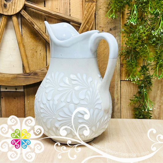 Engobe/White Espiga Large Pato Clay Pitcher - Jarro de Barro