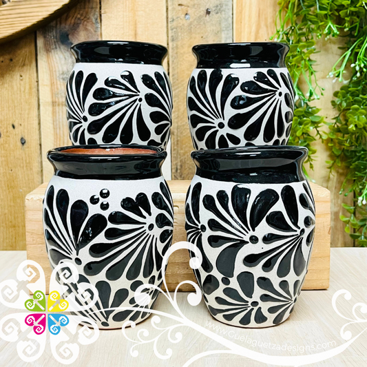 Set of White with Black Espiga Plumeado Cantarito Cup - Set Clay Cantarito