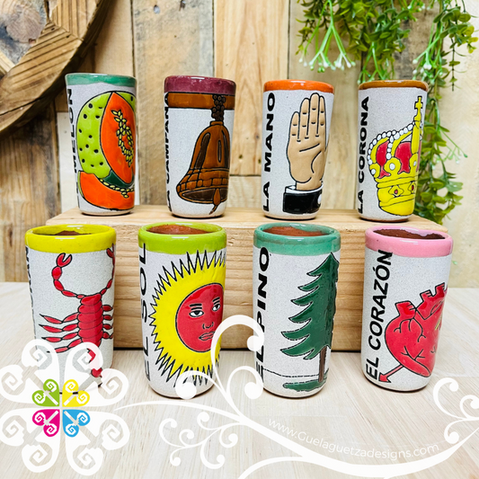 Arenoso LoteriaMX Clay Shot Glass - Set of 4 or 8 pcs