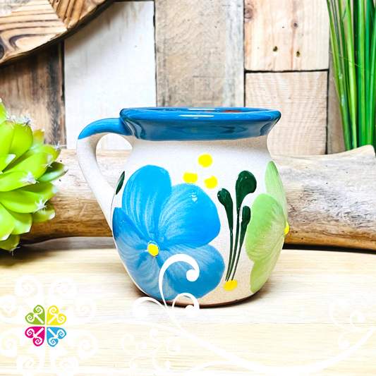 Set of 8 Flowers Decorated Mexican Clay Mugs - Set Taza Barro