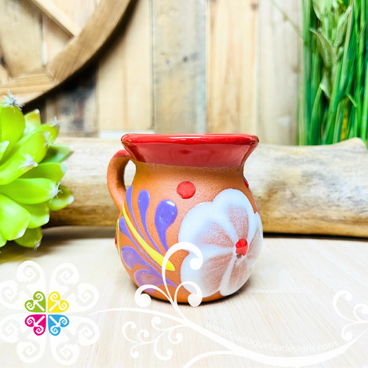 Set of 4 Small Natural Mexican Flower Clay Mugs - Set Taza Barro