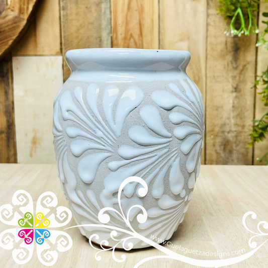 White Espiga Plumeado Bola Clay Vase - Florero Barro