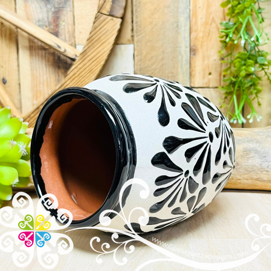 Black Espiga Plumeado Bola Clay Vase - Florero Barro