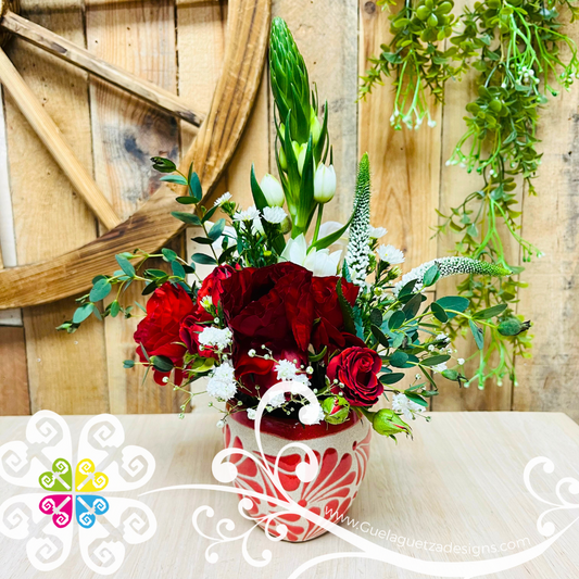 Set of 4 Red Corazon Clay Mugs - Set Taza Barro