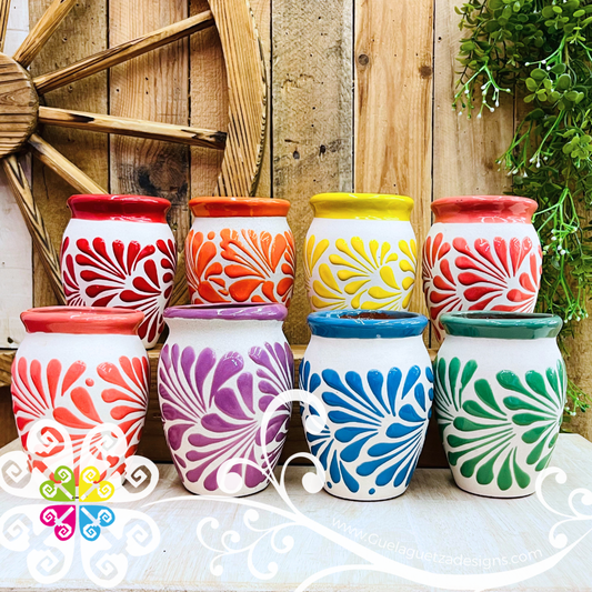 Set of Engobe Rainbow Espiga Plumeado Cantarito Cup - Set Clay Cantarito