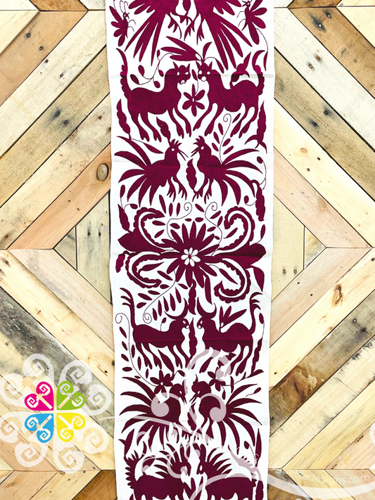 Maroon Large Solid Color Otomi Table Runner - Camino de Tenango
