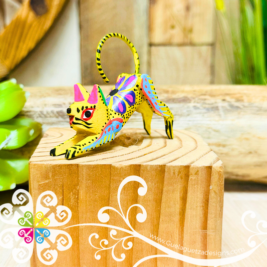 Mini Cat Stretching Alebrije Handcarve Wood Decoration Figure