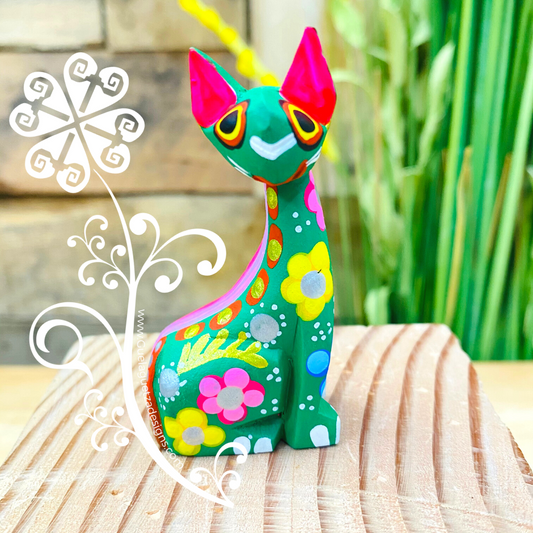Mini Cat Alebrije Handcarve Wood Decoration Figure