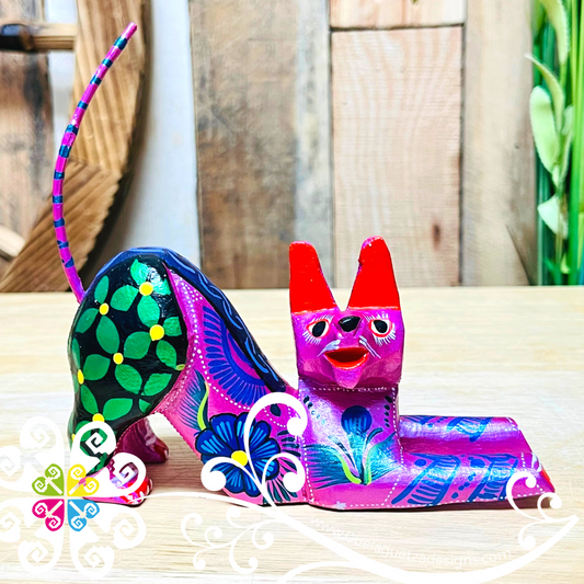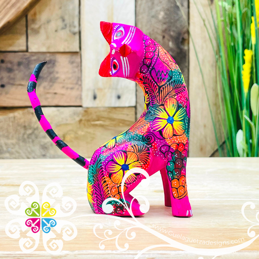 Medium Bending Cat Alebrije- Handcarve Wood Decoration Figure