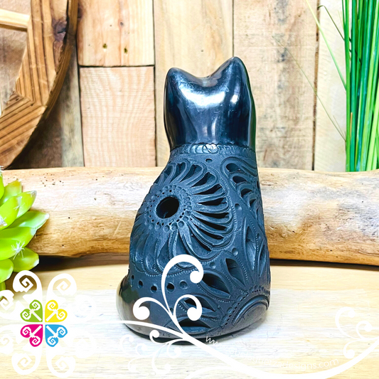 Medium Seated Cat Black Clay Figure - Barro Negro Oaxaca