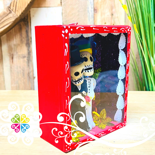 Red Couple Mexican Box Decor - Cajita Decorativa Barro Cocido