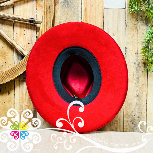 Red Rhombus Mitla Velvet Hat - Hand Painted Hat