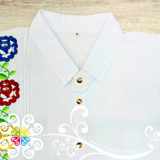 White with Red Lines Picuela Guayabera - Short Sleeve Linen Guayabera