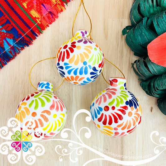 White With Multi Puebla Ornaments - Talavera Christmas Ornaments