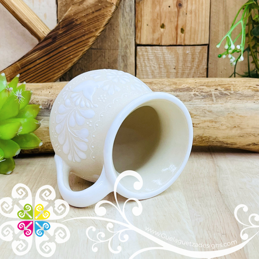 White Taza Ponchera Colibri - Barro Alta Temperatura - Single Clay Mug
