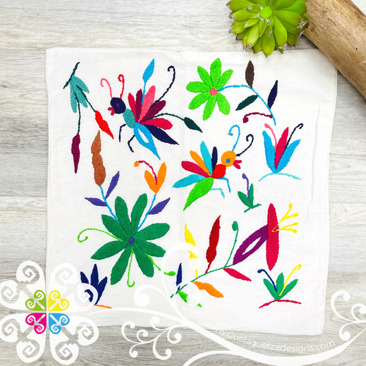 Flowers Design - Square Natural Otomi Decorative Pillow Cases