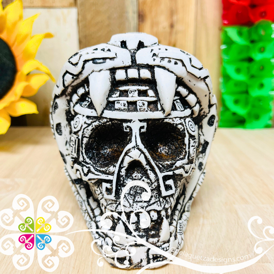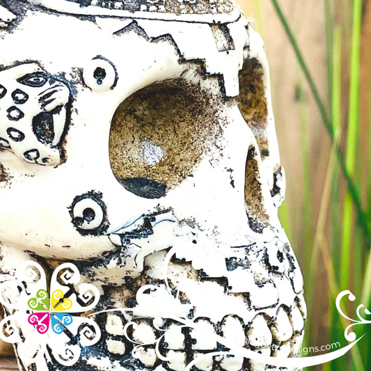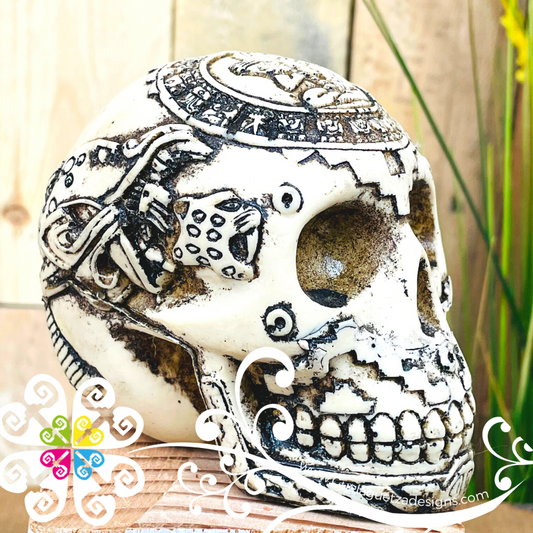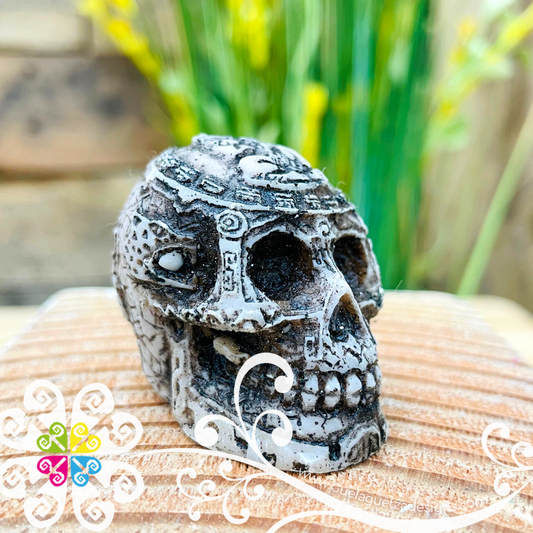Medium Azteca- Artisan Day of Dead Resin Skull