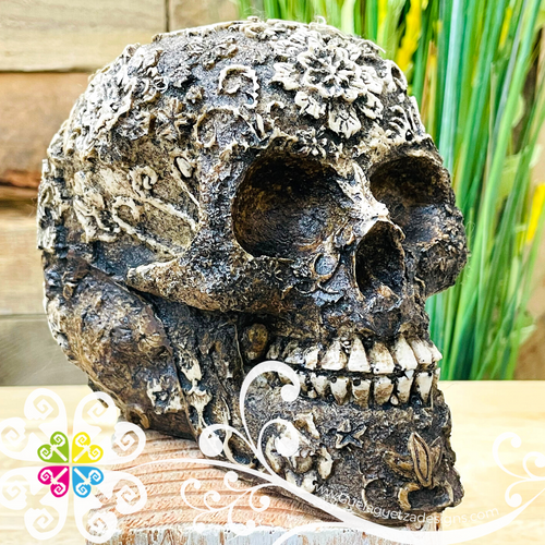 Large Sunflower - Artisan Day of Dead Resin Skull