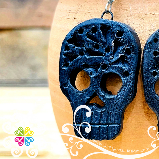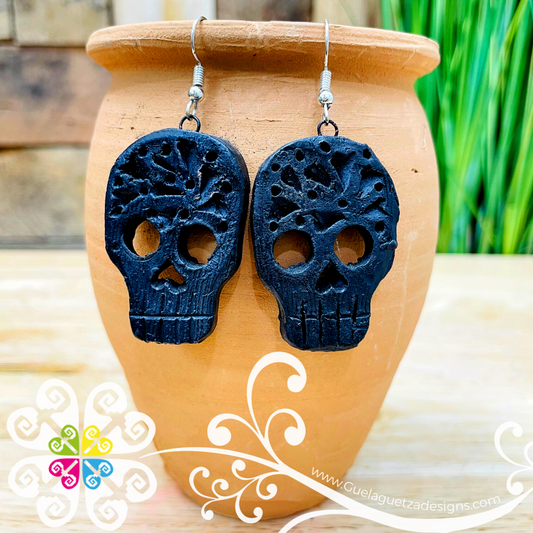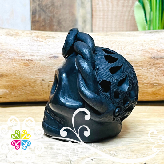 Small Frida Black Clay Skull - Barro Negro Oaxaca