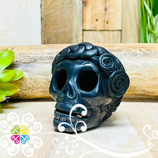 Mini Frida Black Clay Skull - Barro Negro Oaxaca