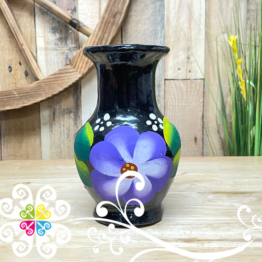 Small Black Clay Handpainted Vase - Barro Negro Oaxaca