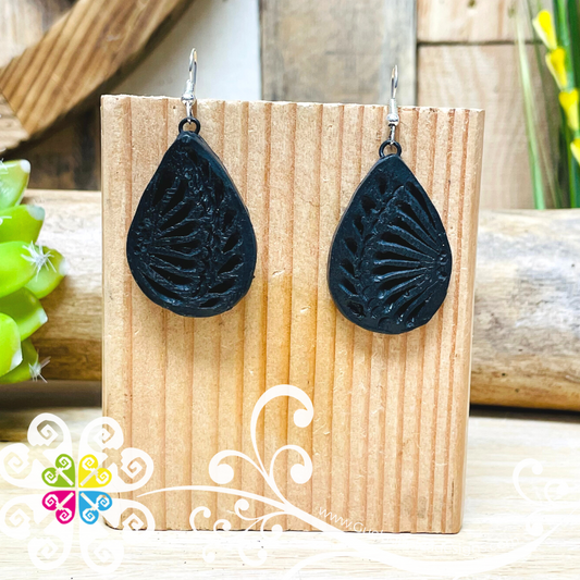 Medium Black Clay Hand Painted Vase - Barro Negro Oaxaca
