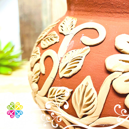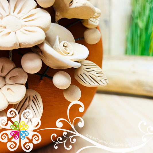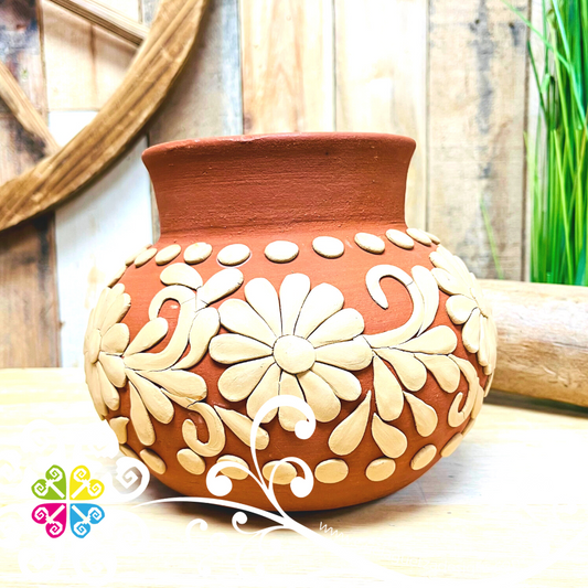 Small Margarita Flower Decorated Clay Ollita - Barro Bordado Oaxaca
