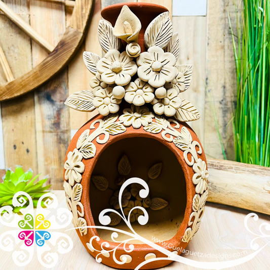 Small Flower Garland Decorated Clay Ollita - Barro Bordado Oaxaca