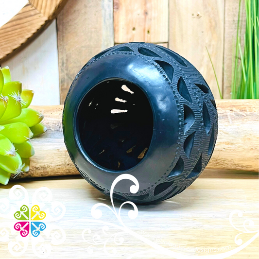 Extra Small Circular Candle Holder - Barro Negro Oaxaca