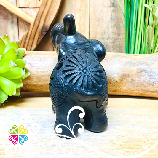 Small Standing Elephant Figure - Black Clay Oaxaca