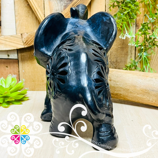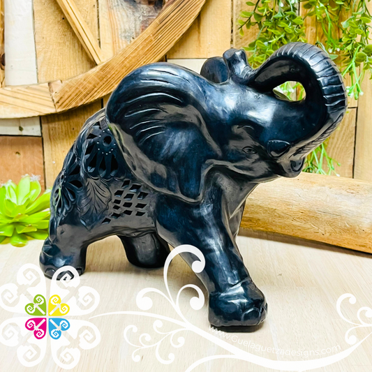 Large Dancing Elephant Figure - Black Clay Oaxaca