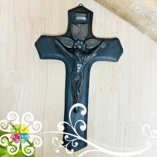 Large Jesus Clay Cross - Barro Negro Oaxaca