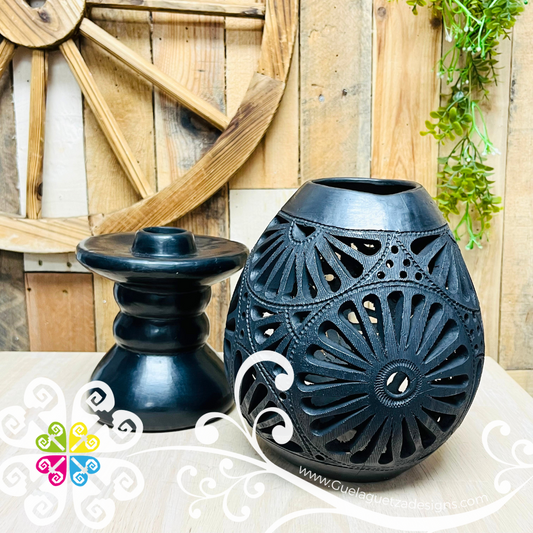 Medium Cantaro Nigua Black Clay Vase - Barro Negro Oaxaca