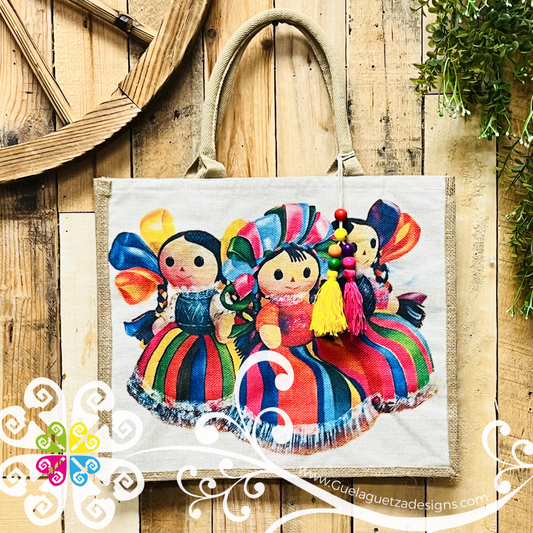 Otomi Doll Mexican Jute Tote - Grocery Tote