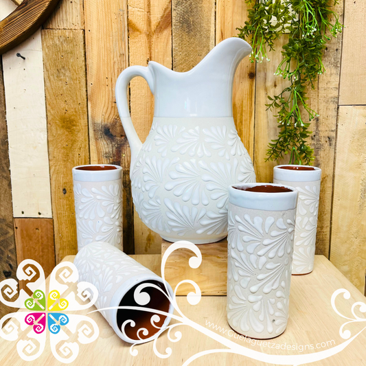 Engobe/White Espiga Pato Pitcher Set - 4 Cups