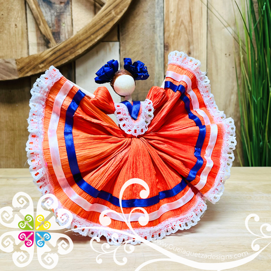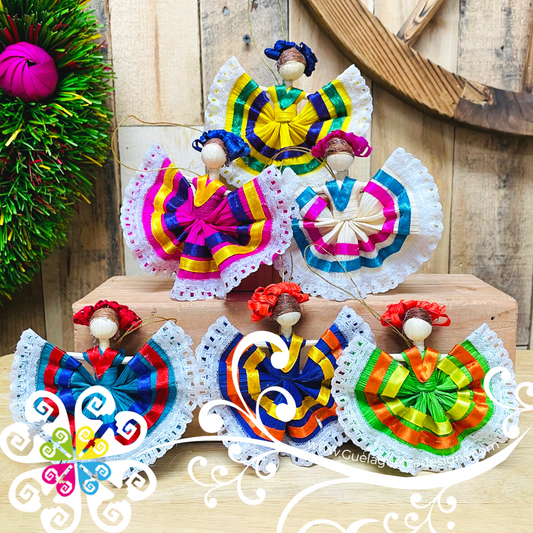 Set of 6 Corn Husk Wide Skirt Doll - Mexican Ornament