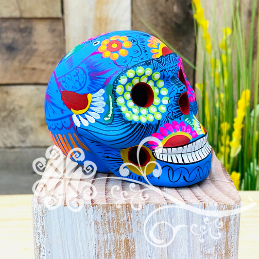 Medium Multicolor Hand Painted Sugar Skull - Calaverita Guerrero