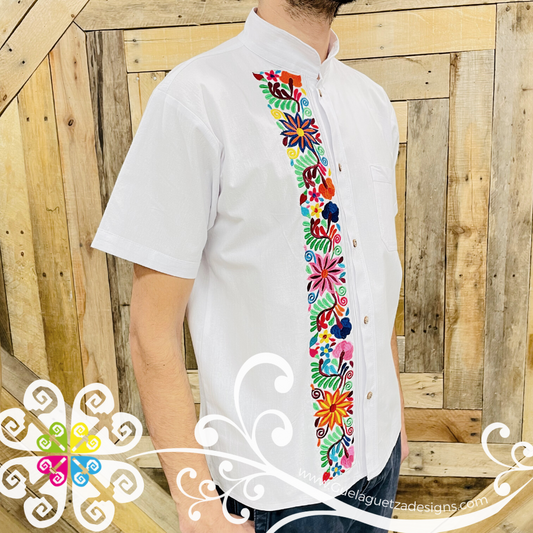 Blue Floral Stripe Shirt - Embroider Men Shirt