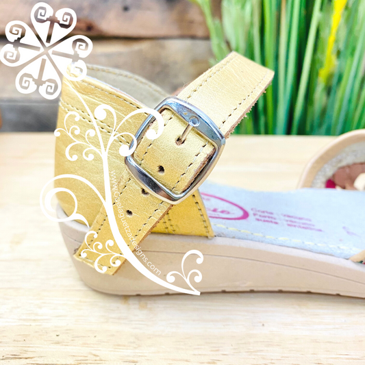 Flat with Buckle - Soft Gold with Queen Bouquet