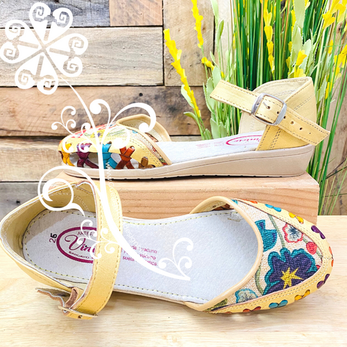 Flat with Buckle - Soft Gold with Otomi Animals