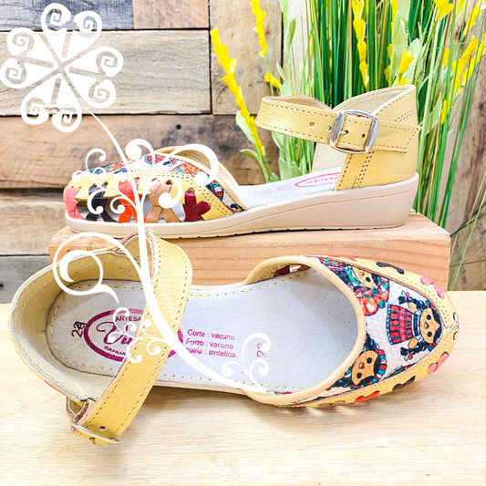 Flat with Buckle - Soft Gold with Dolls