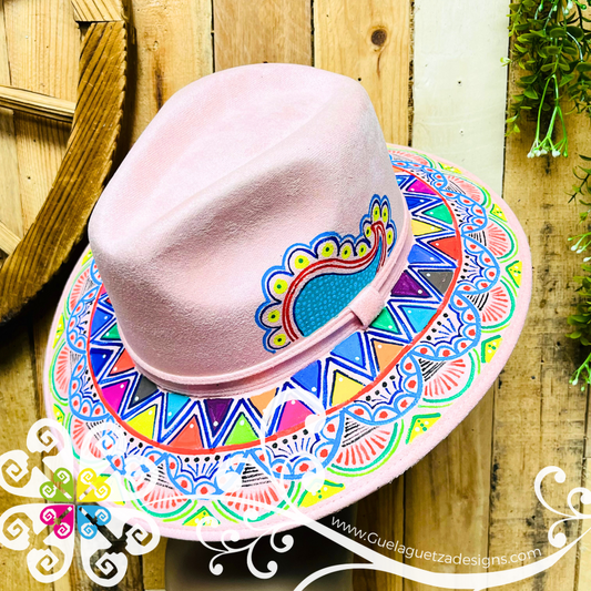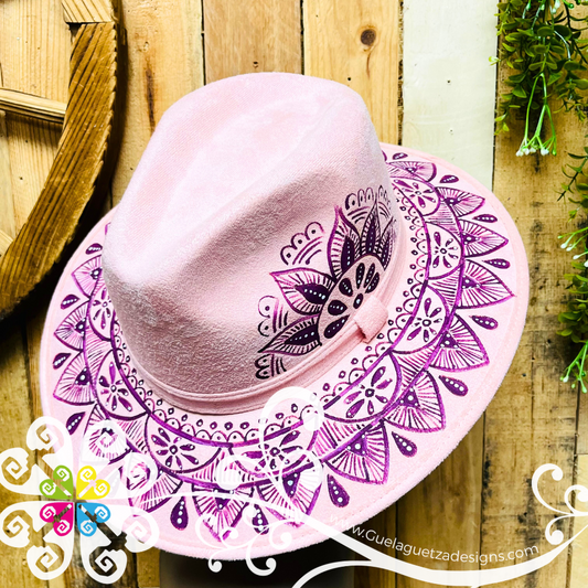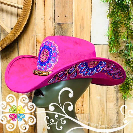 Fuchsia Mitla Cowboy Velvet Hat - Hand Painted Hat