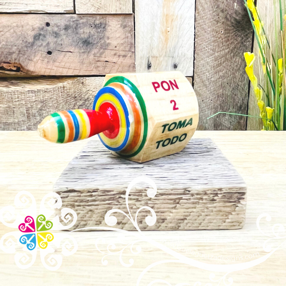 Classic Mexican handicraft perfect for your games during your fiestas! Spin the wooden top and collect the number based on which side it lands. You can play to get candies, coins or just about anything!