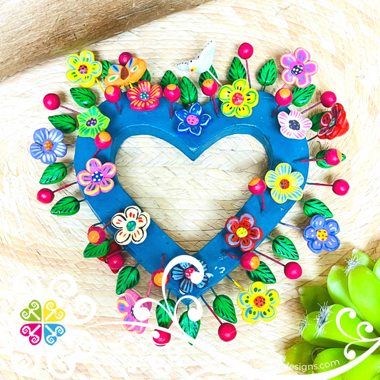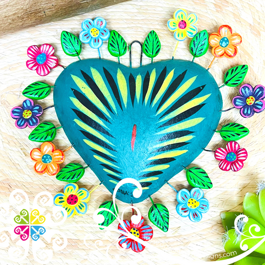 Medium Painted Corazon de la Vida - Corazon de Pared - Barro Cocido