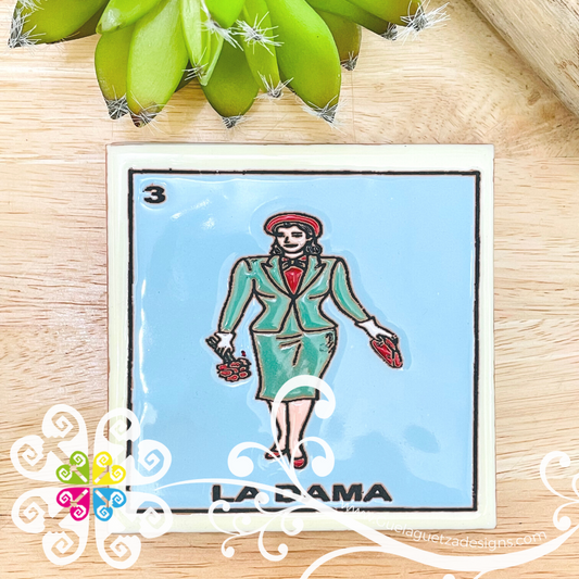 Mexican LoteriaMX Coaster Tile - 3 La Dama