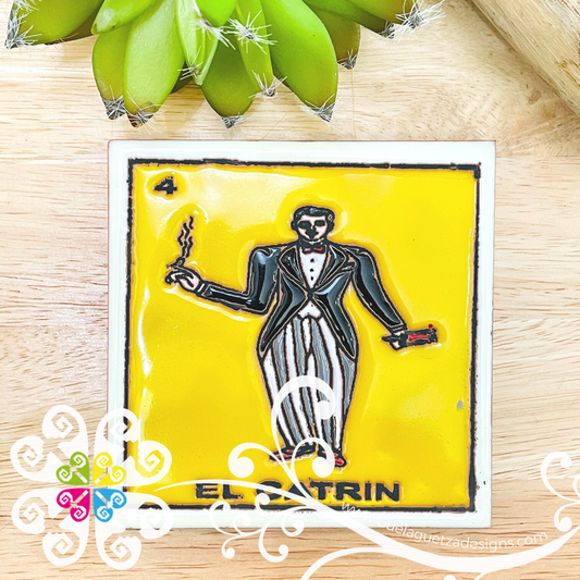 Mexican LoteriaMX Coaster Tile - 4 El Catrin