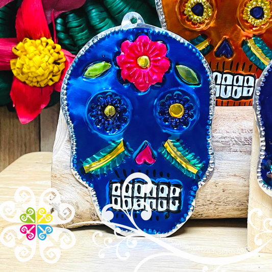 Set of 6 Hojalata Sugar Skull Ornaments - Mexican Christmas
